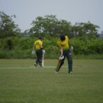 Ali somehow made it to the toss and lost it yet again and was asked to bat first. It looked a replay of the first game as we looked promising with few boundaries and huge six from Richie before giving up his wicket to an undeserved bowl and losing his cool and threw his bat on the ground. Then comes the skipper “Muhammad Ali” who was still looking for some runs under his belt. Things looked good as both Alex and Ali put a partnership of 122 runs despite an extensive sledging from none other than our own Dino. As Alex said “It’s good for me, it keeps me going” so it did but unfortunately getting out for 60 after giving an easy catch at cover. With Ali still on crease, joined by Kobayashi san to put another good partnership of 50 runs with a lot of 2s’ and 3s’. Kobayashi san’s fitness was tested multiple times and proved to be fit enough other than one event of denying the third run, after which umpires decided to have drinks break. Both batters looked very promising, and we looked to put a good total this time but as the ship got stable, Kandasamy sent Rexi back to pavilion. Abu Bakr aka Hassan was promoted to trigger the run rate but was not able to trouble the opposition and got out early.