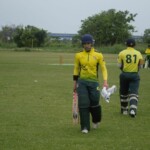 Then comes the new recruit, Masaki Kawashima with his stylish looking straight bat shots. We needed to accelerate, and both tried hard for it. While doing this Ali didn’t realize that he got his maiden Ton in JCL. Great moment for the skipper but the job was not done yet and he tried to give a go but couldn’t finish the innings and got out for his career best of 122 runs.