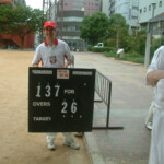 Killer also contributed some classic moments during the innings. He demonstrated his boredom to those around the scorers table by pointing out the tallest skyscraper in Kobe whilst the rest of the game (umpires, batsmen, bowler and field) were waiting for him to return from the drinks break. The scorer’s table also demonstrated their boredom by recording in the scorebook (under Killer at number 11) the number of f-words Killer let rip during conversation. He had posted his own half-century within the space of 7 overs (i.e. more than a f-word a ball), which is I think is a record.