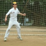 Killer and Scotty Ada replaced the openers and had the KRAC team in 6’s and 7’s and with Russell succumbing after trying to up the scoring rate, KRAC were indeed at their number 6 and 7. Mark’s line and length was superb on a pitch that offered a little, and Scott’s bustling approach at the wicket and good action generated good pace and had the KRAC middle order literally crapping themselves. Killer knocked over the hit-or-miss “Crayfish” Mahendar a ball after being plonked into the Tennis courts, and by drinks KRAC were in trouble at 7 or so down for not much more than 50.
