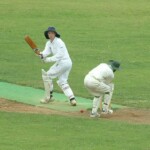 Rowan continued his captain’s effort when he opened the bowling with an over the shoulder no-ball to Steve Burke, who promptly hooked it for 4. An 8 run opening over wasn’t the ideal start for The Falcons, and any pressure on The Wombats’ batting was soon gone. Promoted up the order, NIKKA Hall was a steady and entertaining junior partner for Burkey. Not letting a couple of bruises worry him, NIKKA danced like some kind of demeneted Muhamad Ali.
