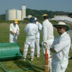 The Wombats opened with Smokin Pete, who’s perfectly mapped out run-up had been thrown away by Alex (gee, what’s a white marker doing stuck in the ground???) never to find it again. Pete bowled with very little penetration, a little like his sex life, although he did have one catch dropped and he was replaced, a bit like his home life.