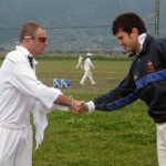 Captain Courageous Chris T came out, no doubt thinking “you dirty f***ng Tomei-pissing Wombat mother f***ers can get f***ed.” Well, that’s how he batted anyway. His was the dictionary definition of the captain’s knock: confident, controlled, aggressive and passionate. No bowlers were spared as he and Dhugs motored along towards victory. He dissected the field, went over the ropes and plucked off singles. He sailed a cut shot tantalizingly over Rob Mann’s hands, survived a no-ball catch and looked set to piss in the Wombats milk-shake.