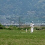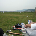 Of course the balls weren’t at the ground either, so while Prezi-dino sorted out an Only In Japan SNAFU, Wombats presented its tall timber Chris his XL Wombats shirt. Steve Burke re-invented himself as a hard task-master: “Get ya whites on do some fielding practise!”