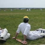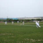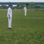 Chuck passed 50, but fell to a quick leg side stumping by Chris T.. Chris M’s long legs couldn’t save him as he scampered through for a quickie he never completed, run out on 40.