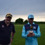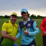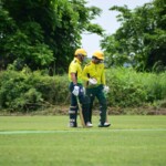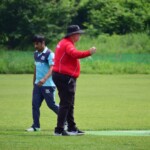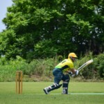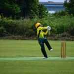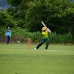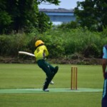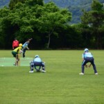 After Robbie spooned one to cover, in came Pres. Kobayashi. Capt. and Pres. took the boys to drinks, with some nice hitting along the way, looking like maybe a partnership was brewing. Alas, the over-confident Kobayashi tried to swat a half tracker over the bowler’s head, only to top edge it, releasing an onslaught of unacceptable language, and some words exchanged with the Sharks bowler (all in good faith).