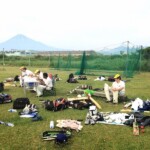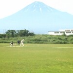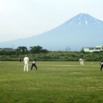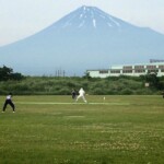 It was a very early start to the day as the team decided to not rent a van and drive down to Fuji (who’s idea was that?!), but instead take the train. On the condition that one arise at sparrow-fart, the 7:10 Tokaido line train bound for Atami saw four or five Wommies aboard – and a few more joined along the way at Yokohama and Fujisawa. The rest were either down in Fuji already, or willing to pay double and catch the bullet train. No communication at all from the designated umpire for the match over the few days before the weekend fueled speculation that we might have to umpire the game ourselves. Fish burgers were purchased at the station for lunch before taxis finally arrived to transport us to the ground. Fears of a game sans umpire were dispelled as umpire Mihindu arrived in time to officiate. I sarcastically thanked him for informing us that he would actually be coming, to which a simple smile and nod of the head was given. Gotta love the Lankans approach to life! Nevertheless, he umpired well throughout the course of the match and was only happy enough to join us for beers after (which reconfirmed the Wombats’ love of Lankans).