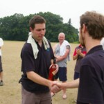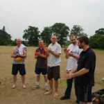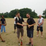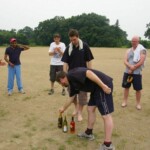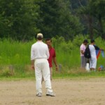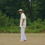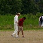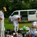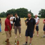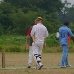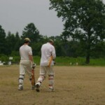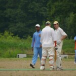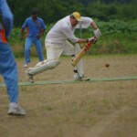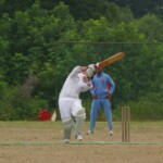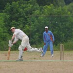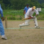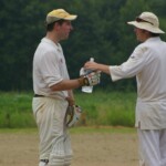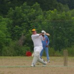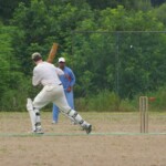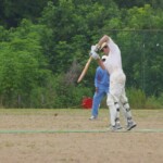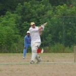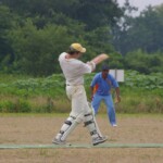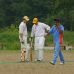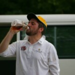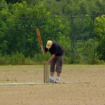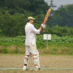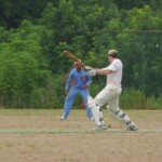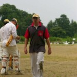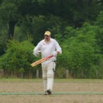 Raj and Abraham wagged away long enough to have Burkey consider giving Jarrad a bowl, but then the skip remembered he had a hung-over 50-something with 2 Yebisu in him, a dodgy back and who hadn’t played outside CM6s for 27 years. No brainer really, and so we were spared the indignity of Dino’s dollies. Paul could have picked up a wicket when a top edge went AWOL and landed safely, but before he could get a second over in, Luke Ray’s pace (or lack of) and got through the defences of the last two bats.