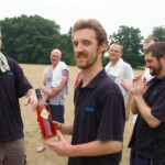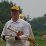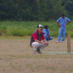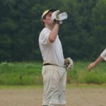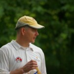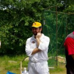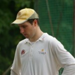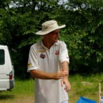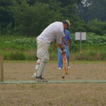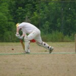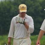 Bouyed by some good old fashioned school-boy smut, the Wombats were in a jovial mood, but soon switched on to serious, when The Freak Luke Ray took a running jumping catch at square leg to give Kyal the first wicket. Tigers were soon in trouble at 3/20 in the 7th when I cut one back to take leg, then on the advice of the stand-in skip Steven Burke dropped a short ball at big-hitting Balu’s nose, which he fended off to the waiting hands of Mark Kelly for a Golden Duck. In 42 balls, Tigers had had just 4 scoring shots.