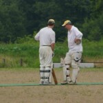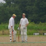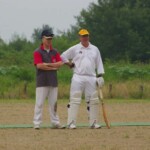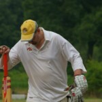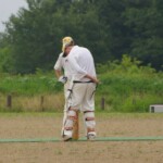 A declined appeal for a stumping had our keeper hot under the collar, his bald and sunburnt head glowing like a red hot bowling ball, as he threw his hands up and gloves down, before the de rigeur Tea Pot, and a plea we will be hearing about come November: “Oh, Come ON!! Burkey- do something!”
