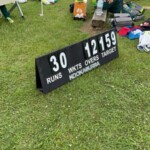 Chelsea led a small fightback, her 15 being the team’s third highest (or fourth, behind “wides”), showing some fine shots and running hard. She should have had more than the one four she made, but a combination of slow ground and solid fielding restricted her. Chandu added 3 before being run out, leaving Corey Hunter-Park to make his first visit to the middle as a Wombat. Over six balls, the ball hit his glove more than his bat before he left/”kicked” (whoever you believe) one onto middle stump. Satish and Chelsea added some runs but it was ultimately too late. By the time Chelsea was bowled and Joe took guard for the first time in three years, he had 6 balls to score 46 runs. He survived the over, ensuring the Wombats the moral victory of batting out the overs.