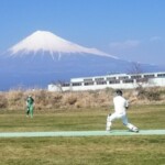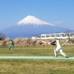 - Young Fuji tail-ender informing the team that the ball only touched his gloves, not his bat, before going into Patmore’s gloves. Naturally the ball was quickly wided by the Fuji umpire and that was the end of that. Village.