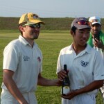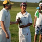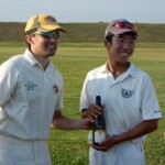 With some edges flying here and there, luck could not hold Nigel away from his first breakthrough. The wicket came in the form of Khan who had been struggling to find runs off Nigel from couple of overs, went plumb and was given LBW. Striking first wicket early, Nigel tried to use the bounce of the pitch which went over the batsmen head couple of times. On one side all the banters were going on in the field and suddenly an outside edge went to Himan who jumped too early but managed to get his hands on the ball, it bounced couple to times at different occasions before it finally touched the ground. AJ in despair had nothing to say. This catch could or would have avoided the 50+ partnership that went in between Bijaya and Takahashi.