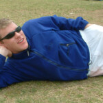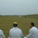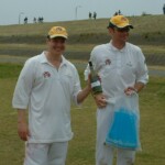 The under-manned Lalazar innings would soon be over though. Wookie was cucumber-cool at short extra cow corner, as one rocketed towards him. The big man stood his ground, and at the last moment simply knelt down and his plate-like hands swallowed the SG just near his ankles. Spacey soon had his revenge, or perhaps redemption, as an almost identical cow-corner chance landed in his safe hands. Of course it’s not his hands we have to worry about, but his feet. No fear this time, as his new found knowledge of the rules saw him stay safely inside the rope, and for the first time in season ’05, out came the jig, Major Jim dancing his way along the boundary.