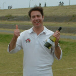 The Club’s best over record was smashed, although it was helped by an umpire with a counting problem. Chuck and Steve hit 25 runs: 4,3,6,4,dot,4,4. The next over yeilded 22 as the fifty came up in 21 balls. Steve Burke got the tiniest speck of dust in his eye and retired hurt on 23 to allow The Big Cat, Whiskas to have a go. Chuck marched on to 37 including a massive calypso pull which cleared the old pavilion. Upon the skip’s dismissal, Chunky came out and mopped up the winning runs with a on drive to reeds for 4. Wombats won their first 20 over adventure in just 7, for the loss of one wicket.