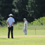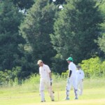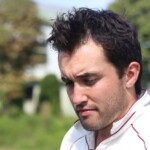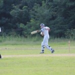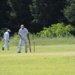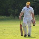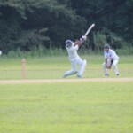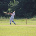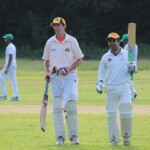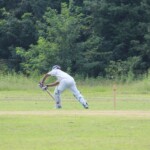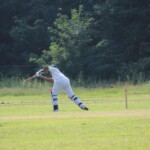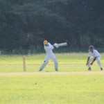 At the other end Ev must have been going at it abit too hard as he had to retire hurt with “repetitive strain injury – to the wrist”…… must have been writing all these long match reports, that’s definitely the reason! He headed back to the pavillion for 15 and an ice pack as Luke “No way will I be given out LBW this week again” Eyes looking great, hitting a few super fours before….once again…. being given out L.B.-“I hate this bloody game”!…It was not all wasted though as a terrific dummy spit was had, one for which I am sure Lukey may receive a Dummy Spit of the Year award nomination for.