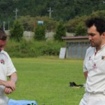 Alex “You call that a pitch?” Patmore and Evan “You think your job is tough, my boss is also my Mother In-Law” Hitchman opened at the same ground where they shared a 180 run opening stand earlier in the season. A long opening partnership to take us to victory and early beers was not to be however as good bowling by the Chiba openers saw a Patmore edge taken in the slips and we were one down for not many. Ev was looking scratchier than guy with a peanut allergy being force-fed snicker bars and somehow managed to not get out to the frustration of the circling Sharks. After a few big hits he was still there but Chula was not, out LBW to Singh and suddenly, like a Wombat arse mooning the main street of Roppongi of a Saturday night around 3am…our middle order was “exposed”. Shahir “My ramadan is longer than your ramadan Yus” Ahmed was just the man for the moment. As he is want to do, he stuck his head down and his solid defensive technique saw him hold up an end and see off some tricky Sharks bowling while the runs slowly but surely got rattled off.