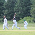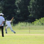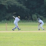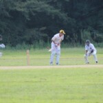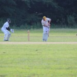 Rasika came and went and it looked like the old Wommies collapse was in full bloom. Jamie saw out a few overs and was just starting to middle a few before missing an in swinger and seeing the dreaded finger go up from the umpire and the Wombats were staring down the barrel at 7/73 with an injured Ev and a fired up President, Alex Koolhof in the trenches warning everyone who told him to “just block it out-let Nige score the runs” – that he would in fact….“fark it, Im just gonna bloody smash it!”. Luckily the trademark Koolhof sixes over cover wouldnt be needed as Nigel and Rony saw out the last few runs with ease…..well if you call trying to hit a six over cow corner with a man on the boundary with ease, then yes! It was a great innings by Nige, to back up his sterling performance with the ball and saved the Wommies from another embarrassing collapse and loss against our Chiba rivals.
