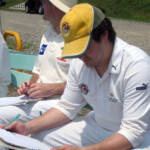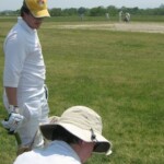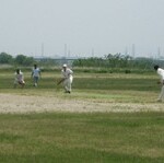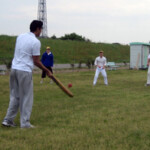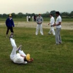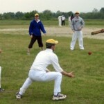 Stand-in captain Doc, taking the reins from Chuck for the day to give the latter a chance just to enjoy a game of cricket, proceeded to lose the toss, but we were nevertheless happy to be sent in by the Indians. This makes Doc 0 from 2 in tossing as captain, so Pup has offered to the job next time as the supreme tosser in the side. With usual opening combination Burke, who was in England, and Dino, who was at the sumo (although it was unsure whether he was competing or just watching), unavailable, Chuck and Morty faced the new ball, and it was soon obvious that batting was not going to be easy on a pitch with very inconsistent bounce. Still, the scoreboard ticked over at a respectable rate, helped especially by wides, including 10 wides in a row by the Engineers’ first change bowler. You would think that just by pure chance you would have to get one ball out of ten on the offside, but alas this Engineer was not having a “lucky” day.