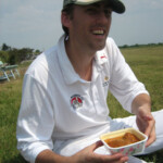 This brought the newest members of the side, Chris “The Vicar” Mortimer and Bish together… and their partnership also brought us the first nomination for Dummy Spit of the Year. What is it with Gunma and run outs? Last year it was Doc and Dino, the year before that it was Dr Dave and Dino, but this year it’s the Vicar and Bish. Bish had moved to 2 when he squeezed a ball out through point and set off immediately with a call of “yes”. Morty, seeing the fieldsman a mere 3m from the ball, promptly called “wait” (although in hindsight “no” may have been more appropriate) and turned back towards the non-striker’s end…..but then Bish called “yes” again and kept running….and then it was a race to see who could get to the non-striker’s end first. Now normally in Christian circles, a bishop outranks a vicar, but in this case, Morty won the race back to the crease and Bish had to go, heralding some rather unsavoury words in Morty’s direction as he went. …I wont repeat them here, but safe to say they were the kind of words you wouldn’t hear in church, put it that way.