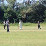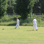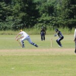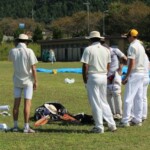Alas, it was not to be as the middle order that has been very often missing this season, and for the past few seasons crumbled with some rather aggressive shot selection seeing us lose 3 quick wickets and soon be 5 for not many at drinks. Patmore was playing very circumspectly as he made sure that we would at least see out 30 overs and set some sort of target. Shazza held up an end well for a while before also departing. The lower order once again came to the rescue with Rasi and Nige launching some big ones and adding some vital runs to the scoreboard. Patmore was out after a game-saving half century and with 120 odd on the board, there was half a chance for the Wombats if we bowled tightly, took early wickets and fielded like a team of Jamie Payne’s on acid.