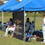 Wombats were put into bat and it would be Ev and Gordo to open. The Max attack was on the money from the off, with not many wides or balls to hit and the outfield sluggish it was difficult to get runs away. Gordo was out early on hitting through one and being caught which brought the skipper to the crease earlier than he had planned. Would it be another 150+ partnership between these 2? Unfortunately it was not be as Ev, after hitting a few fours got squared up and knicked one behind which the Max keeper gladly gathered. 2 for about 20 but still plenty of batting to come with Patmore at the crease with Tom and still Luke, Chula, Nige, Shazza and plenty more to come – 200 was still very much on the cards. A score of 200 is about par for Tanuma so that’s what the Wommies needed to put on.