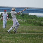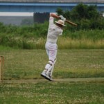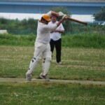 Well, that was pretty much the last joy for the opposition. Chuck started off with a huge six over square, summing up not only the state of play but his intentions. From that moment the run rate climbed up where we needed it, and not even the most enthusiastic and ambitious appealling could stop it. Steven Burke stood tall, and played second fiddle as C Jones set the tone. His sixes were as huge as they come, and I’d reckon he hit 7 or 8 of ’em. The experienced pair pushed the first runs hard and turned many a single into twos.