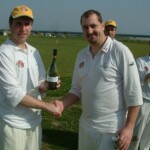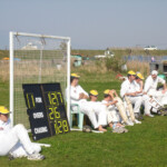 The partnership was broken only by a sympathy Leg-before, going against the luckless Jarrad (14), his disappointment manifesting itself in the form of airborne gloves and a few choice words. Our opposition showed no reluctance to appeal, LBs round the wicket, run outs that didn’t break the stumps, catches that hit the ground.