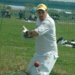 Reggie worked hard and eventually got his reward. Naeem had missed a number of drives, but got one out of the middle for six, only to try the same shot again next ball. A cartwheeling middle stump was his reward, and Reggie again had the key wicket. 60-odd on the board, the game would now swing the Wombats way. Reggie put a shudder through Smokin Pete’s bank balance when he snared two wickets in two balls, but the Y10,000 hat-trick did not come.