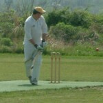 Naeem had evaded the double gully set-up and I was relieved, so to speak. Reggie took over and the tussle continued. A run of dots would be punctuated by a boundary, as the 2nd wicket again eluded us. A few fielding misses on the unforgiving outfield helped pad Friends account. One cut shot got passed a diving point, bounced passed Chuck’s backing up, and a triple Harbour Bridge was completed by Killer Kelly on the fence for the funniest four you’ll ever see.