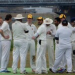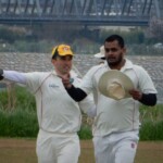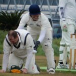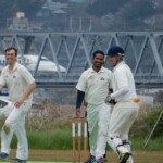 So it was with 208 to get to win that Skipper Patmore and the injured, crook, and reluctant Dino went out to get the run chase away. The bowling was tight early and less than 40 runs were taken off the first 10 overs. However, the change of bowlers allowed Patmore to play some fine cricket shots, and with the Dinosaur doing little more than holding up an end, the scoring rate increased at a brisk rate to be 0-93 at the start of the last over before drinks. It looked like the ‘Bats would go to drinks at no wicket for a 100-odd and very pleased with their efforts. It was not be unfortunately with the skipper (48) top edging a paddle off ex-fast bowler now slingy spinner/darts player Ogawa directly to the awaiting hands of Ra at short-fine leg. Still, 1-93 at drinks and the Wombats were sitting pretty.