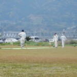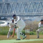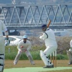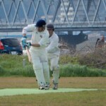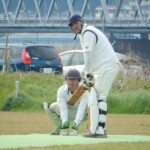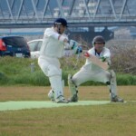 One became two with Hanada being cleaned bowled by that man Yusry again, getting one to dart in and have leg stump flying out of the ground. Nigel then got in on the action getting Matsuchika to get a thick edge that was well-held low to the ground by Luke at second slip. At 3-18, I was dreaming of an early bat, but it wasn’t to be with Bhuddika and Ota steading the ship to take the Wyverns to drinks without further carnage. Not long after drinks, however, Rassi bowled a nude ball and had Bhuddhika trapped in front for a sedate 36 by his standards.
