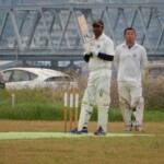 Ogawa came out to join his national teammate Ota to add another 50 to the score with some lusty blows. Once Ota got to 50 however he decided that was enough and cut one to where Shahir was stationed at deep point. Apparently Ota hadn’t been watching Shahir rocket them in from the deep and decided to take on his arm. A bit of game awareness goes a long way and another Shahir missile over the stumps to Patmore had Ota well short and regretting the fact that he hadn’t been paying attention. Uehara then lasted as long as you’d expect getting a thick edge to the keeper off Nigel for said bowler’s second.