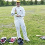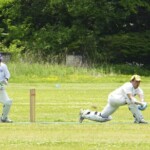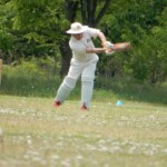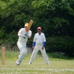 The opposition though decided instead of trying for victory they would block the next 7 or 8 overs out which would achieve two things. 1) – They would have no chance of winning the game, 2) – They would stop the Wombats a chance of getting the 1 bonus point for bowling the oppo out under 32 overs. So bizarrely they did just that – in only the 3rd game of the year, despite having the wommies rattled and the cream trousers starting to turn various shades of brown – with half an hour of blocking practice (and bowling on the pitch practice for the Wombats) the game was done and dusted after 32 overs as a contest.