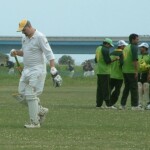 Urged on by Robbie Axe Man, Chuckles had his first trundle for the year, and let’s hope not the last. Denied pace at both ends, the M.I.G. lower order collapsed. Chuck snared his first in his first, as a revolving door was hastily erected in the Lala pavilion. The Whyalla Warrior added a second and third ‘x’ to his name, including the top scorer Iqbal (92). The danger man hit a Shaxxx full toss straight to Reggie Dawson on the square leg boundary, who seemed to leap in from the hill and catch the ball millimetres inside the rope before landing sure footed on the ground. As there occasionally is in these games, there was some controversy, but Reggie, who hadn’t enjoyed such close attention since Bubbles was Adam Ant about it.