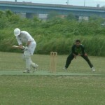 Spacey (footy) and Curly (Roppongi) both sporting shiners, stitches, a bit of concussion and a broken nose gave the skip some “die on me belly” inspiration for his pre-match gee-up, and the Wombats went out to bowl. Lalazar’s roll-over at Koiwa was soon a distant memory as the Men In Green came out swinging, much like that little punk in the ‘pong Friday. It took some divine inspiration, cheers Duncan, to bring down the first wicket, as a strong gust of wind helped my slower ball sit up nicely to beat the opener, bowled middle stump. 5 overs in, but a wee bit short of 50.