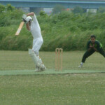 In his substantial shadow, the skipper soldiered on. His cover drives were crisp and clean. He teased the field with pushes into the gaps, stealing singles and twos. Once he pulled out The Calypso Pull and sent the ball to the shithouse. He eased his way to his top score for the Club (82), flicked a 6 off his toes, before falling LB with victory in sight. The remarkable thing about this new record partnership was the amount of dot-balls. 195 runs they added, and a quick glance at the scorer’s book would show the care and planning that went into the knock.