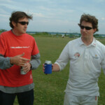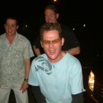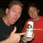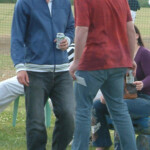 Lala continued to help themselves to the runs, riding their luck, but also playing a lot of late cut/dabs past the slips. That these arsey little shots didn’t collect any edges was as frustrating for us as losing his broadband connection would be to Chuck. Killer Kelly, Whiskas’ replacement for the day, grabbed M.I.G. #2, a mistimed drive held nicely be Cap’n Chuck at mid on. Luck evaded Reggie most of the day, one chance going down at slip. The number of schwing and misses can’t be counted. Lala had raced into triple figures at around 10 an over by the time Reggie got his just desserts. A street cricket slog-drive of middle flew to third man C. Jones, who offered this assessment of the choice of shot: Crayfish, CRAYFISH, CRAYYYFISH!!!!